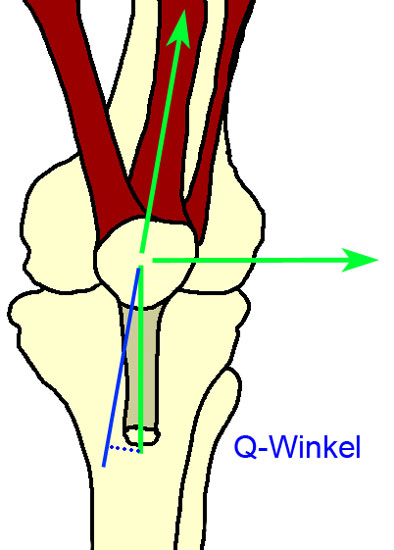 Ein Risikofaktor für die Entwicklung von Kniepathologien scheint die Veränderung des Q-Winkels zu sein 45. Allerdings scheinen dabei weniger die statischen Winkelverhältnisse als die dynamische Konstellation zwischen der initialen Kontaktphase (Initial Contact Phase) und der Belastungsphase (Loading Response) eine Rolle zu spielen 6.