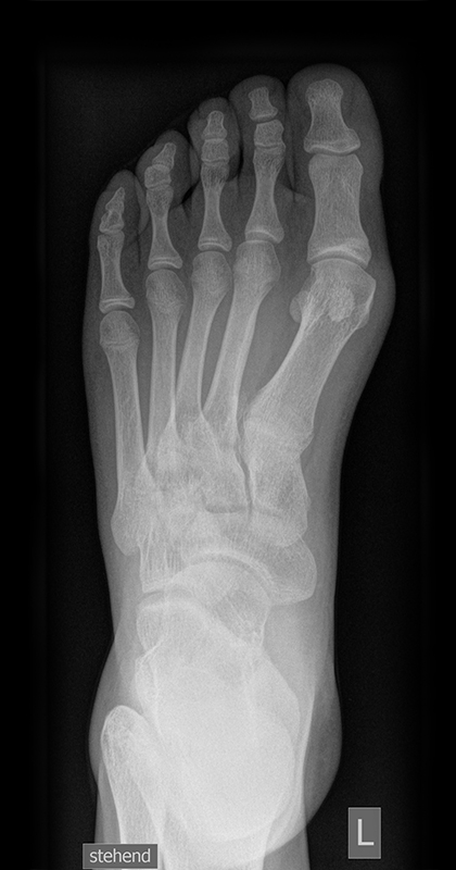 - Das Fersenbein ist vertikal aufgerichtet
