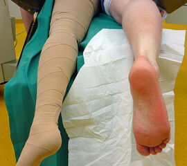 - Hochlagerung, Kryotherapie, Schmerztherapie und Lymphdrainage in Abhängigkeit von Schwellung und Schmerzen.