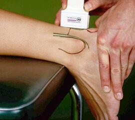 Referenzstrukturen: In Abhängigkeit von der Lokalisation Innenknöchel, Fibulaspitze, dorsaler Mittelfuß, Sehnen.