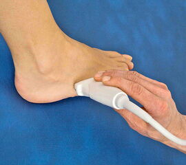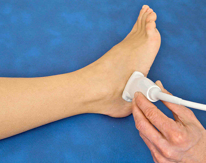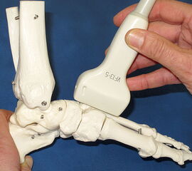 Bei der Diagnostik und Therapiekontrolle von Verletzungen und Erkrankungen an Sprunggelenk und Fuß, wie auch an anderen Bewegungsorganen spielt die Sonographie eine zentrale Rolle. Der Untersucher kann auffällige klinische Untersuchungsbefunde unmittelbar darstellen und die betroffene Struktur auch dynamisch untersuchen. Technische Voraussetzung ist ein für den Bewegungsapparat geeignetes Ultraschallgerät mit Linearschallkopf. Bei sehr oberflächennahen Strukturen oder zum Ausgleich einer unregelmäßigen Oberfläche kann zur besseren Ankopplung eine Vorlaufstrecke verwendet werden.