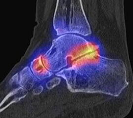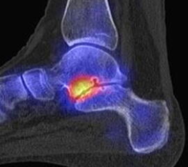 Parthipun et al. untersuchten den Stellenwert der SPECT/CT bei 52 Patienten mit schmerzhaften Fußwurzelarthrosen. Bei 37 % Änderung der geplanten Injektion (0,5 % Bupivacain und 80 mg Methylprednisolon) durch die SPECT/CT-Befunde. Die Erfolgsrate betrug 88 % entsprechend einer Schmerzreduktion von mindestens 50 % gemäß VAS. Die SPECT/CT wurde von den Autoren als hilfreiche Ergänzung zur klinischen Untersuchung eingestuft 13.