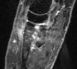 Unbestritten ist die MRT aufgrund ihrer hohen Sensitivität zum Nachweis/Ausschluss von Weichteil- und Sehnenläsionen die primäre diagnostische Methode. Allerdings kann die SPECT/CT die MRT, in dem sie die Schmerz-Relevanz der Sehnen-Läsion bildgebend zuordnen kann, unter Umständen ergänzen 5.