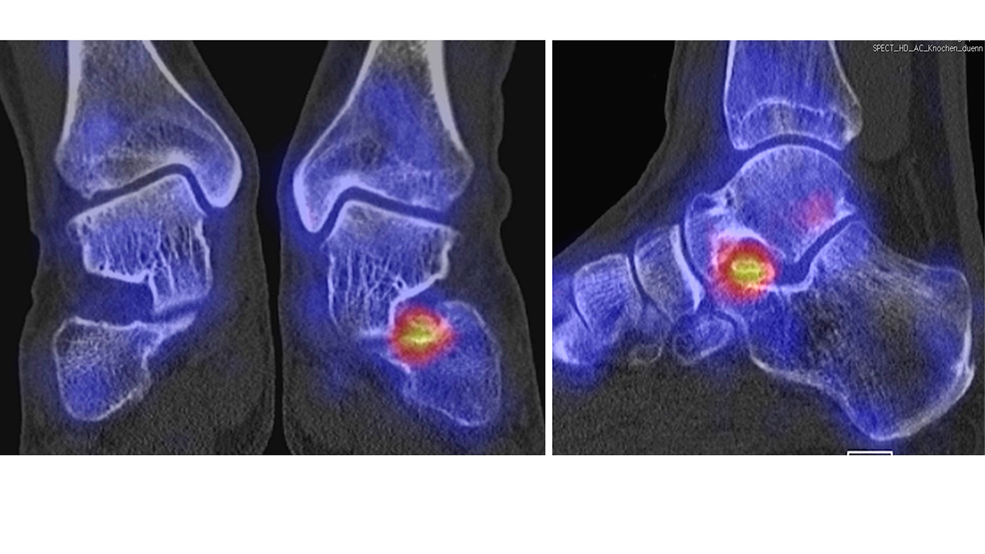 Auch Stressreaktionen am unteren Sprunggelenk können mit Hilfe der SPECT/CT exakt lokalisiert und differenziert werden.