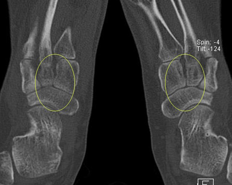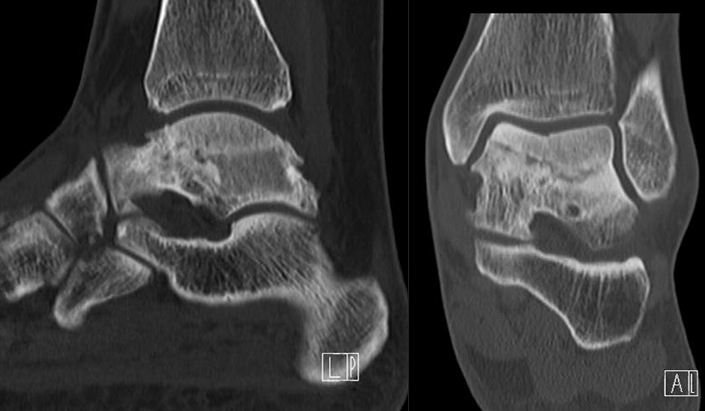 Auch Boulet et al. publizierten einen ähnlichen Fall 37. Sie beschreiben den Fall eines 45-jährigen Sportlers (Basketballer) mit chronischen Sprunggelenkschmerzen und lateraler Sprunggelenk-Instabilität bei Zustand nach wiederholten Sprunggelenksdistorsionen. Konservative Maßnahmen (Tape-Verbände, Physiotherapie) waren erfolglos. Es bestanden neben der lateralen Sprunggelenk-Instabilität auch ein Druckschmerz am Sinus tarsi. Im Röntgen konnte ein Ossikel im Sinus tarsi abgegrenzt werden, im MRT ein Längsriss der Peroneaus brevis Sehne, ein Ödem in dem Ossikel und im Tarsus. Im SPECT/CT zeigte sich korrespondierend ein deutlicher Hypermetabolismus in dem Ossikel. Zunächst erfolgte eine operative Stabilisierung der Sprunggelenk-Instabilität, welche jedoch keine Beschwerdefreiheit erbrachte. Erst die Resektion des Ossikels führte zur Beschwerdefreiheit.