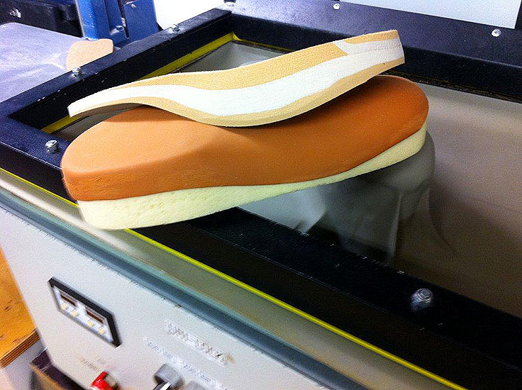 - Weichschaumeinlagen für Diabetiker werden im Sandwich-Verfahren mit verschiedenen