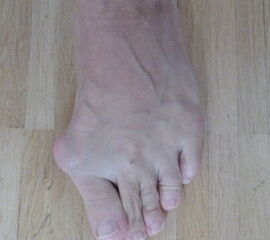 Eine Varus- oder Valgusdeviation des Vorfußes wird als Pes adductus (Sichelfuß) oder Pes abductus bezeichnet. Der häufigere Pes abductus ist bei fortgeschrittenem Plattfuß auf eine mediale Subluxation des Taluskopfes im Talonaviculargelenk zurückzuführen. Häufig findet sich eine Vorfußverbreiterung (Spreizfuß, Pes metatarsus) (Abb. 2e) mit sekundären Deformitäten der Zehen (Hallux valgus) und Zeichen eines chronischen Tiefertretens des Metatarsale 2-4 (Metatarsalgie, Fehlbeschwielung).