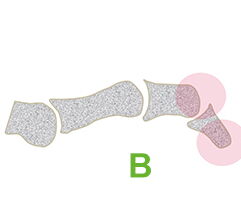 Die Flexionsfehlstellungen der Kleinzehen, welche in flexible und kontrakte Deformitäten unterschieden werden, bedürfen je nach Lokalisation der Beugefehlstellung einer klaren Begriffstrennung (Hepp 2004). Bei der Hammerzehe kommt es zu einer maximalen Beugung im Zehenmittelgelenk und einer Überstreckung im Grundgelenk (Abb. 3a), bei der Malletzehe dagegen zu einer alleinigen, maximalen Beugung im Endglied (Abb. 3b) Die Krallenzehe entsteht oft aus einer Hammerzehe. Es findet sich eine Dorsalextension im Grundgelenk und eine Beugefehlstellung sowohl im Mittel- als auch im Endgelenk, wobei die die Zehenspitze den Boden in der Regel nicht mehr berührt (Abb. 3c). Die in den Abbildungen verdickt gekennzeichneten Hautareale sind bei den einzelnen Deformitäten vermehrt druckbelastet und damit beim DFS ulcusgefährdet. Da die Begriffsbestimmungen häufig in der Literatur unklar sind und mehrdeutig verwendet werden empfiehlt sich oft die Beschreibung der genauen Deformität, z.B. Hyperextension im Metatarsophalangeal-Gelenk (MTP), kontrakte Flexionsfehlstellung im proximalen Interphalangealgelenk (PIP) oder distalen Interphalangealgelenk (DIP).