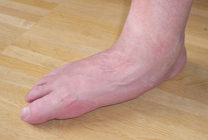 Ein Spitzfuß (Pes equinus) kann sowohl durch eine Verkürzung von Achillessehne, M. gastrocnemius und M. soleus, aber auch durch ein mechanisches Extensionshindernis im oberen Sprunggelenk bedingt sein. Folge der Spitzfußstellung ist eine deutliche Druckumverteilung mit Mehrbelastung des Vorfußes. Typisches Merkmal des Hohlfußes (Pes cavus) (Abb. 2b), welcher oft mit einer Rückfußvarusstellung kombiniert ist, ist ein pathologisch überhöhtes Fußlängsgewölbe. Er ist meist Folge neuro-muskulärer Grunderkrankungen.