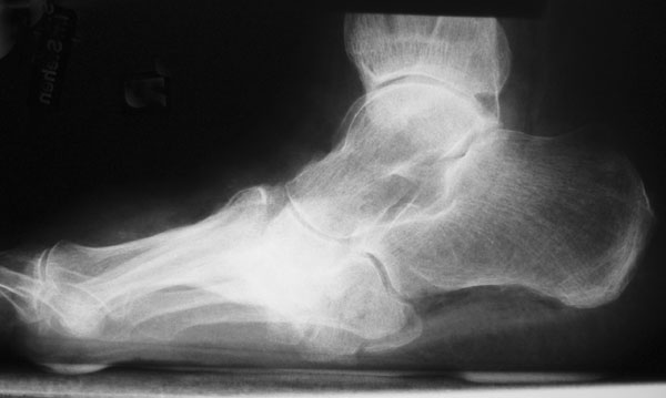 Die Nativröntgenuntersuchung der Füße erfolgt beim DFS standardisiert durch folgende Projektionen: beide Vorfüße dorso-plantar im Stehen (evtl. im Schuh), beide Füße mit OSG seitlich im Stehen, Fußwurzel beidseits 45° schräg, OSG beidseits anterior-posterior. Bei Verdacht auf eine beginnende Osteoarthropathie oder zur Differenzierung zwischen Osteoarthropathie und tiefer Knochen-/Weichteilinfektion kann die Durchführung einer MR-Tomographie und ggf. 3-Phasen-Skelett-Szintigraphie von Nutzen sein 22. Bei Achsfehlstellungen im Rückfuß wird zusätzlich die Saltzman-Aufnahme durchgeführt. Insbesondere zur Planung rekonstruktiver Eingriffe bei Osteoarthropathie ist eine Computertomographie mit 3-D-Rekonstruktion oft hilfreich (siehe Kapitel Radiologische Diagnostik). Eine laborchemische Untersuchung der humoralen Entzündungsparameter (Blutbild, BKS, quantitatives C-reaktives Protein) ist bei Verdacht auf eine Infektion und zur Abgrenzung zu einer DNOAP obligat. Lokale Druckspitzen lassen sich mit Hilfe der Pedobarographie identifizieren 26.