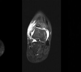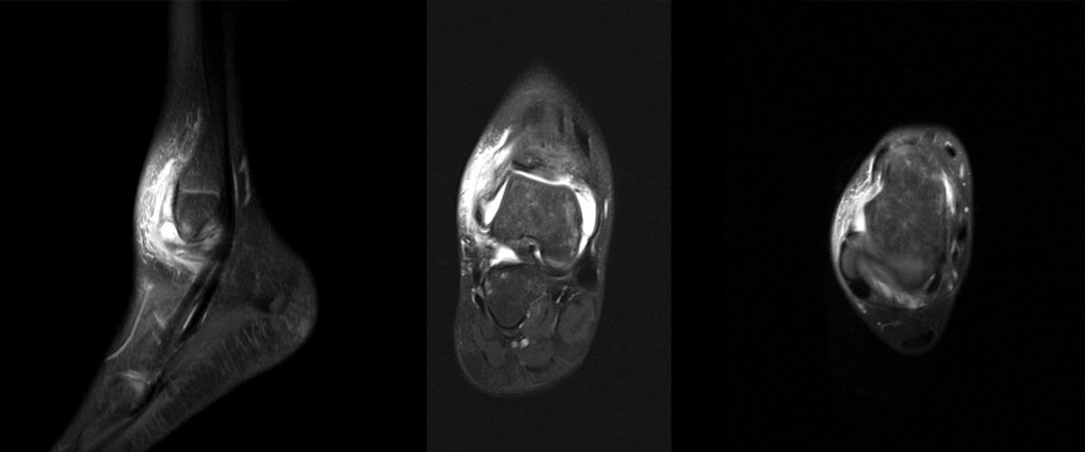 Das Os trigonum lässt sich als isolierter Knochen dorsal des Talus seitlichen Röntgenbild darstellen. Normalerweise hat das Os trigonum keine klinische Relevanz. Bei entsprechenden Beschwerden und einer Aktivierung im MRT kann der Knochen arthroskopisch entfernt werden. Gehäuft beobachten wir eine mechanische Problematik durch das Os trigonum bei jugendlichen Fußballspielern und Tänzerinnen.