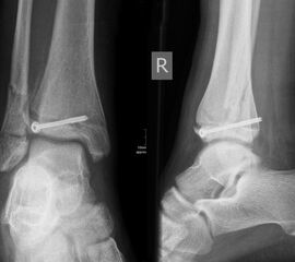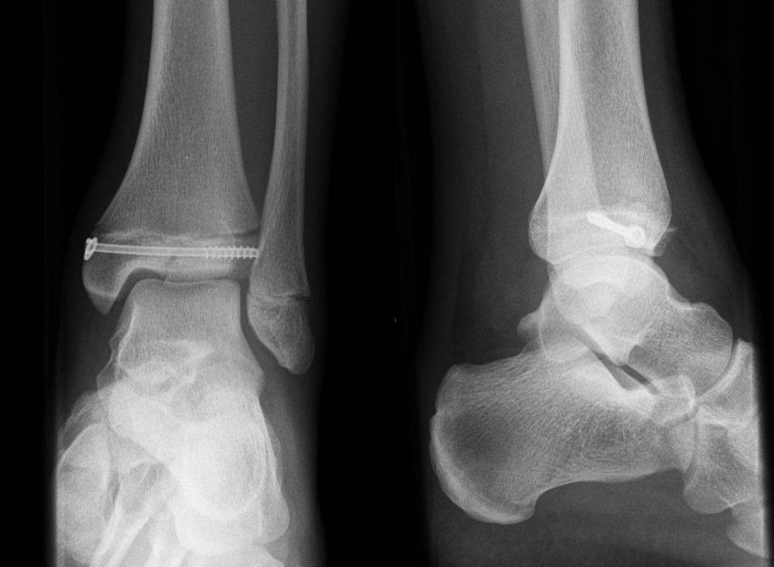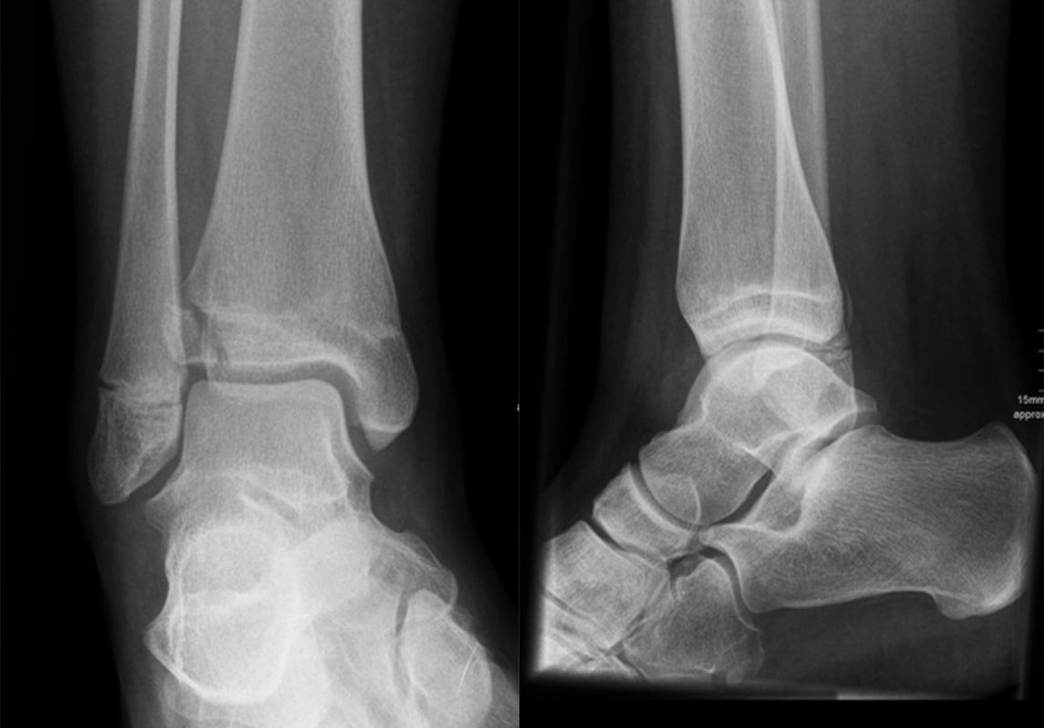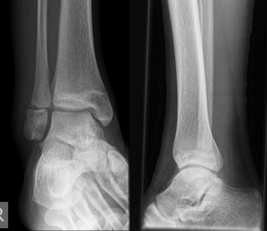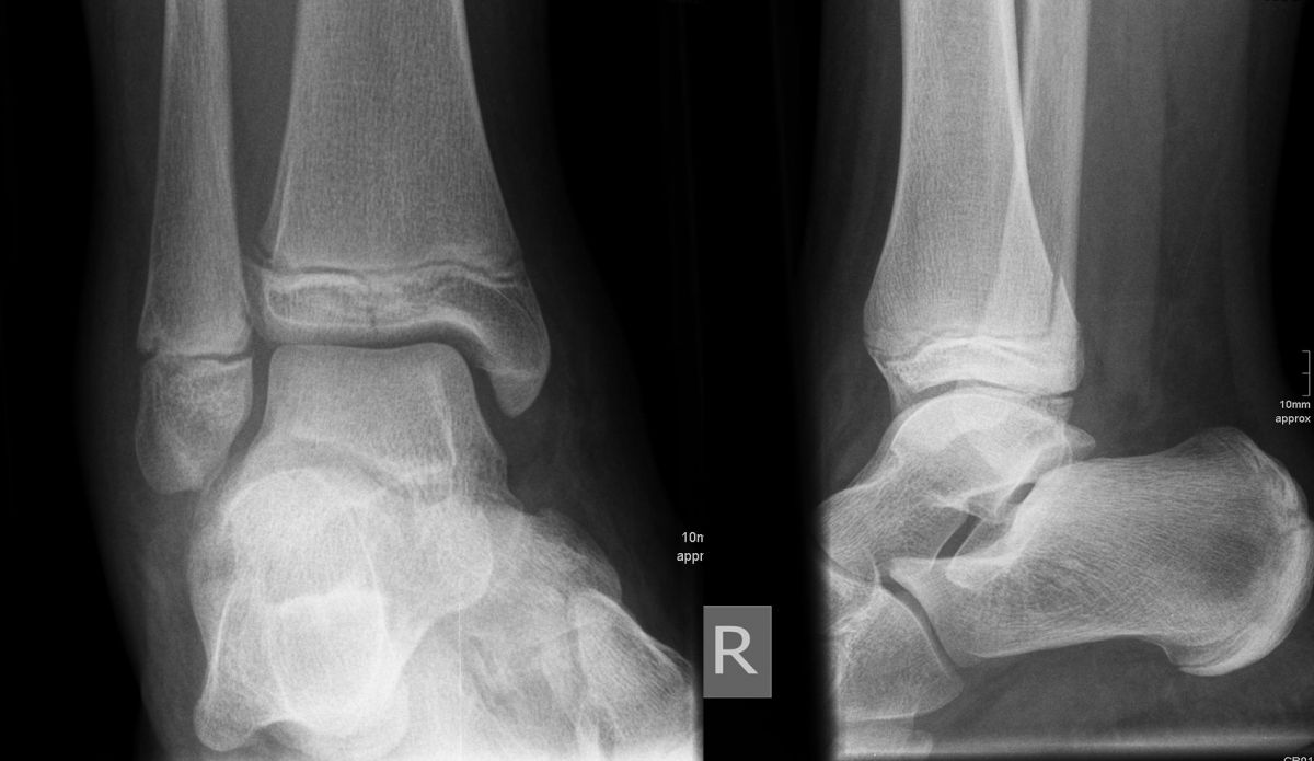 Soll eine knöcherne Verletzung ausgeschlossen werden, wird ein Röntgenbild des Sprunggelenks in zwei Ebenen durchgeführt.