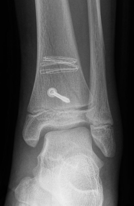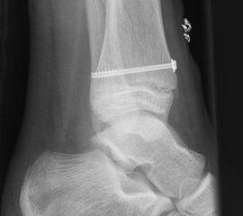 Nach der Osteosynthese wird die Fraktur für ca. vier Wochen in einem Unterschenkelgips ruhiggestellt. Bei Schmerzfreiheit der Frakturzone erfolgt anschließend eine schmerzadaptierte Belastungssteigerung über weitere zwei Wochen. Sobald unter Alltagsbedingungen Beschwerdefreiheit besteht kann die sportliche Belastung langsam gesteigert werden. Kirschnerdrähte werden 6-8 Wochen postoperativ, Schrauben nach zwölf Wochen entfernt. Es empfiehlt sich klinische und radiologische Kontrollen im Abstand von 6 Monaten bis zum Wachstumsabschluss durchzuführen, um ein mögliches Fehlwachstum frühzeitig zu erkennen.