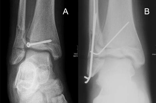 Behandlungsziel ist die exakte Rekonstruktion der Gelenkfläche sowie die Minimierung des Risikos einer späteren Wachstumsstörung. Dislozierte Frakturen werden offen reponiert, die Osteosynthese erfolgt mit einer Kleinfragmentschraube. Finden sich viele kleine Fragmente kann eine K-Draht Osteosynthese durchgeführt werden. Wird der Innenknöchel operiert, kann bei gleichzeitiger hochgradiger lateraler Instabilität eine Rekonstruktion des lateralen Bandapparats durchgeführt werden. Fibula Frakturen stellen sich meist spontan ein, sodass hier keine zusätzliche Osteosynthese notwendig ist.