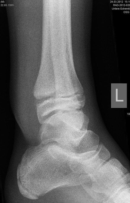 Laterale Bandverletzungen sind beim Kind häufig. Im Alltag stellt sich häufig die Frage, ob eine knöcherne Verletzung vorliegt. Ohne Röntgenbild lässt sich eine knöcherne Verletzung nicht sicher ausschließen, allerdings ist auch ein negatives Röntgenbild keinesfalls definitiv beweisend, dass keine knöcherne Verletzung vorliegt. Hinweise auf einen knöchernen Schaden sind ein ausgeprägter Gelenkerguss, ein starkes Hämatom sowie eine ausgedehnte Schwellung im Knöchelbereich. Trotzdem handelt es sich hierbei um subjektive Kriterien, die im Einzelfall schwierig zu quantifizieren sind.