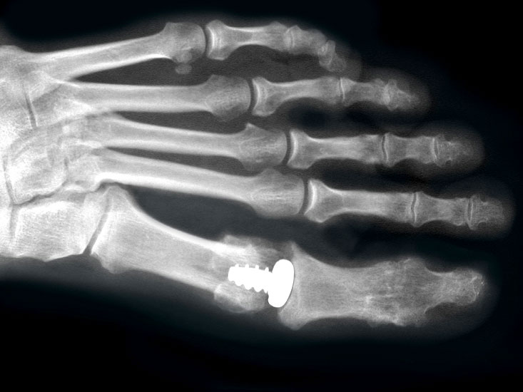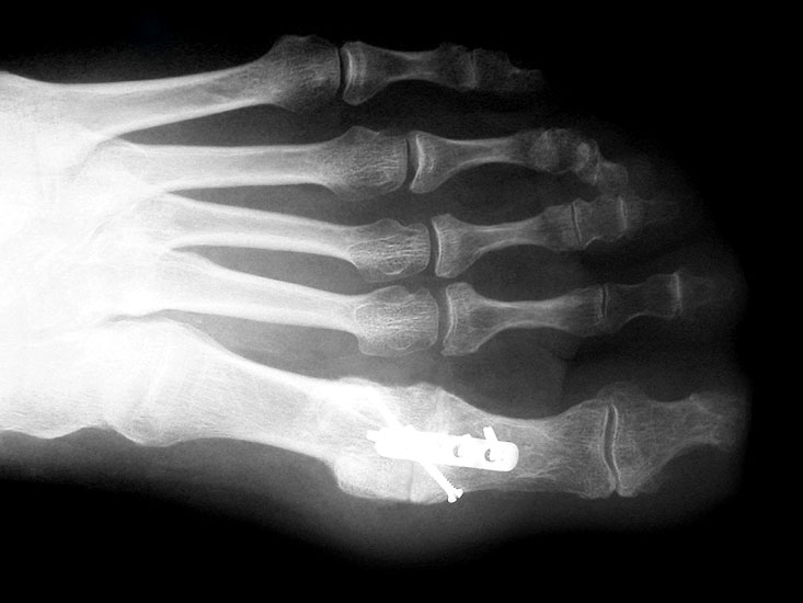 Hauptkomplikationen sind: ungünstige Stellung der Großzehe, ossäre Non-Union und Schmerzen im Großzehenzwischengelenk. Ungünstige Stellungen der Großzehe werden in allen Ebenen (Flexion, Rotation, Varus/Valgus) schlecht toleriert und resultieren meist in einem schmerzhaften Großzehenzwischengelenk. Eine Position um 20° Dorsalflexion wird als optimal zur Verhinderung von Überlastungsreaktionen am Großzehenzwischengelenk gesehen 45. Bei der Non-Union kann das Metall entfernt werden, mit dem Resultat einer fibrösen Verbindung mit stabiler, oftmals schmerzfreier Wackelbewegung der Großzehe 44.