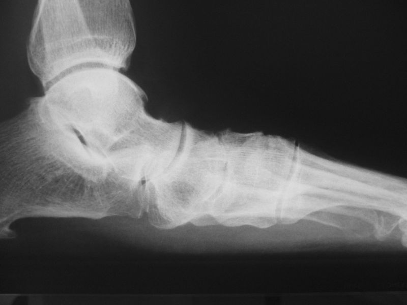 Die Diagnostik beinhaltet die komplette klinische Untersuchung des Patienten bei entkleidetem Unterkörper mit Funktionstests, Abtasten der entsprechenden Gelenkreihen (Chopart, Bona Jäger und Lisfranc) und Überprüfung der Beweglichkeit der Tarsometatarsalgelenke mit dem Klaviertasten-Test 11. Beurteilt werden Fußformveränderungen, osteophytäre Anbauten, sowie eine mögliche Verkürzung des M. gastrocnemius-soleus-Komplexes mit Hilfe des Silfverskjöld-Tests 12. Es werdemRöntgenaufnahmen des Fußes im Stehen in 2 Ebenen und ergänzend eine Schrägaufnahme des Fußes durchgeführt. Bei Fußfehlstellungen erfolgt zusätzlich das Röntgen des oberen Sprunggelenks im Stehen und eine Saltzman-Aufnahme 13.