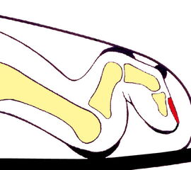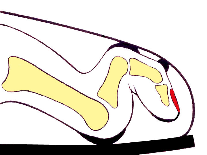 In der Literatur (Baumgartner R., Stinus H., 1995) wird in diesem Zusammenhang auch auf den Vergleich zwischen einer Krallenzehendeformität und dem Aussehen einer Vogelkralle hingewiesen (Abbildung 2).