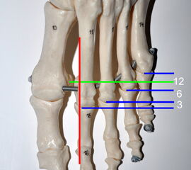 Durch dosierte Rückkürzung des Metatarsale ist das Tiefertreten des nach dorsal luxierten Grundgliedes unter Rebalancierung der Gelenkflächen möglich.