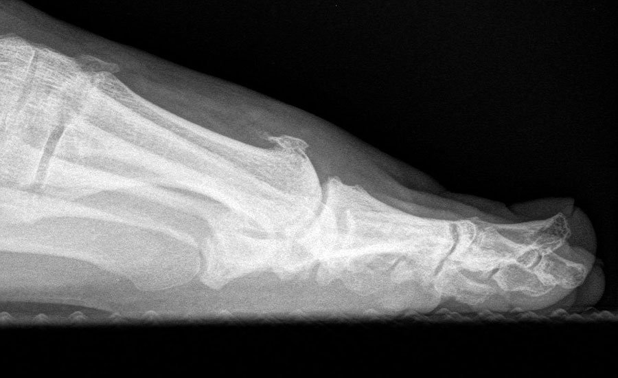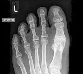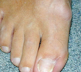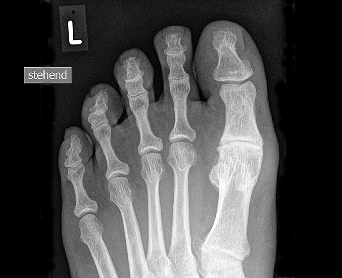 Schwere Arthrose des Großzehengrundgelenkes mit ausgeprägtem Ruheschmerz