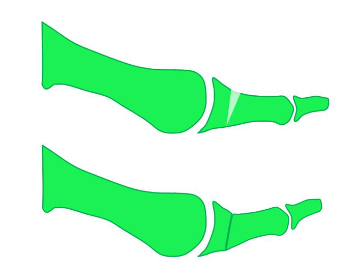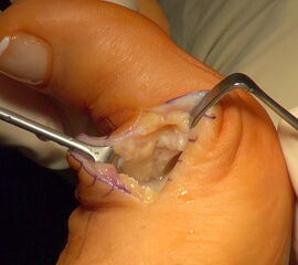 Die Cheilektomie kann mit verschiedenen Osteotomien kombiniert werden um die Beweglichkeit im Großzehengrundgelenk weiter zu verbessern. Bei der Bonny-Kessel Operation wird eine dorsale Closing wedge Osteotomie der Grundphalanx durchgeführt (Abbildung 12).