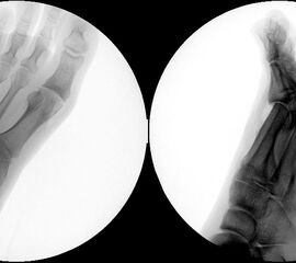Röntgenaufnahme des Fußes in drei Ebenen unter Belastung