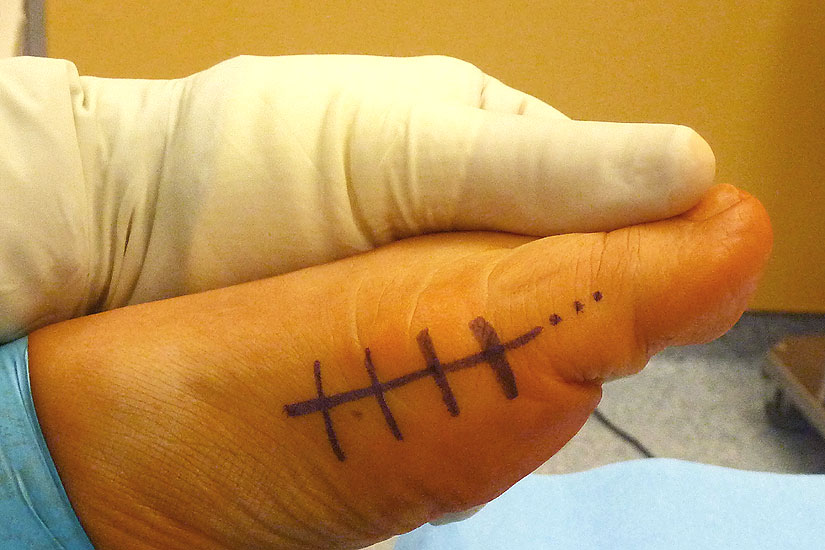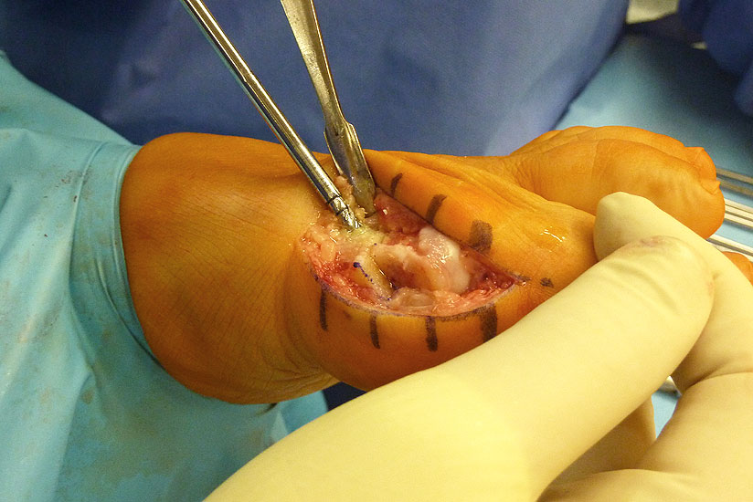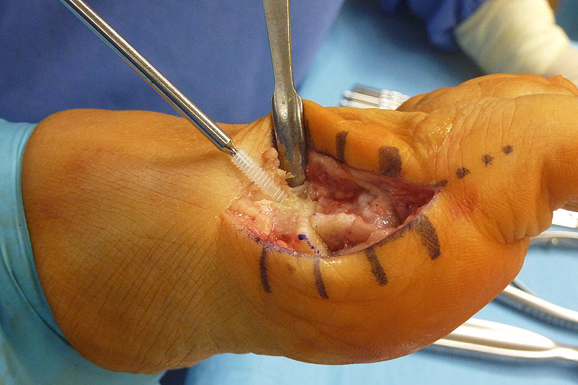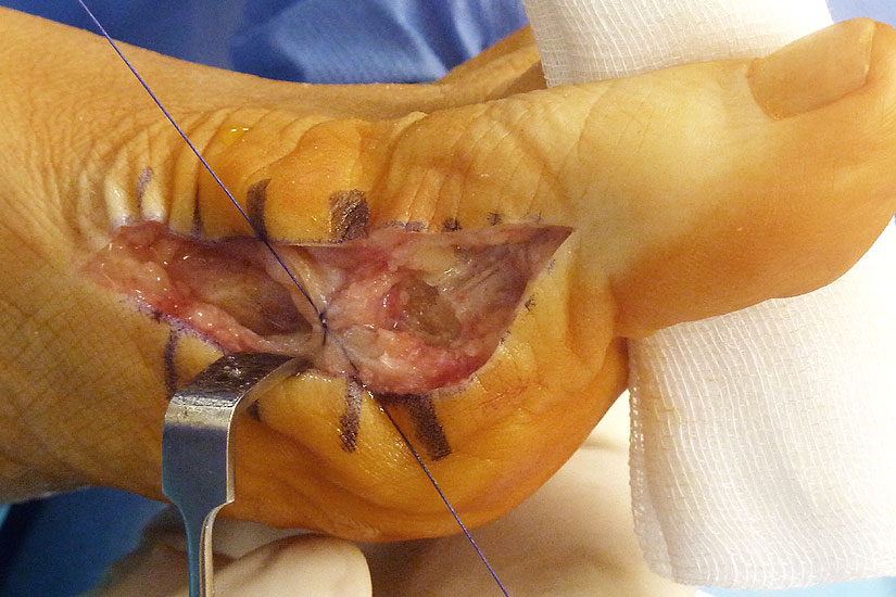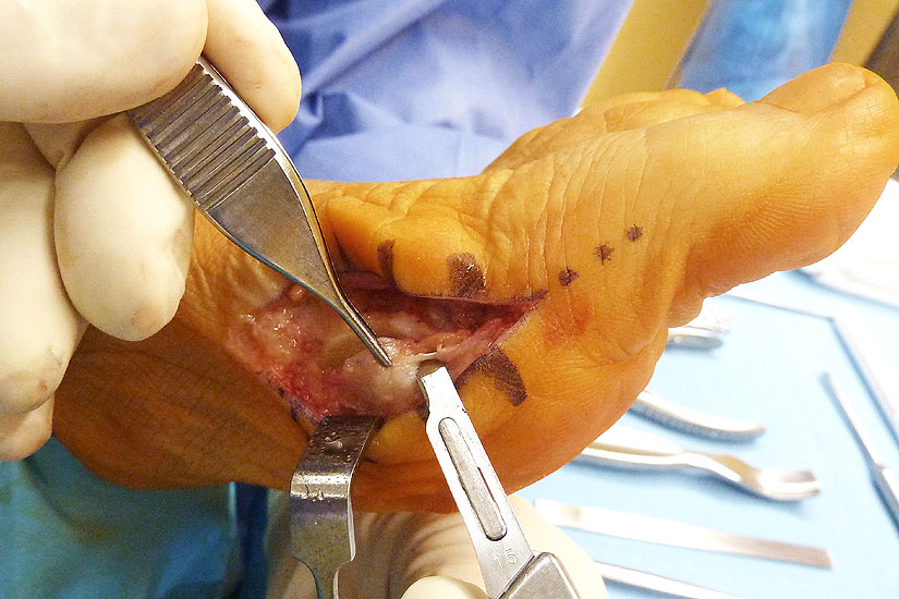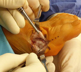 Verletzung des Nervus peroneus profundus insbesondere beim lateralem Release über einen Zugang zwischen Metatarsale 1 und 2 von dorsal