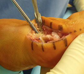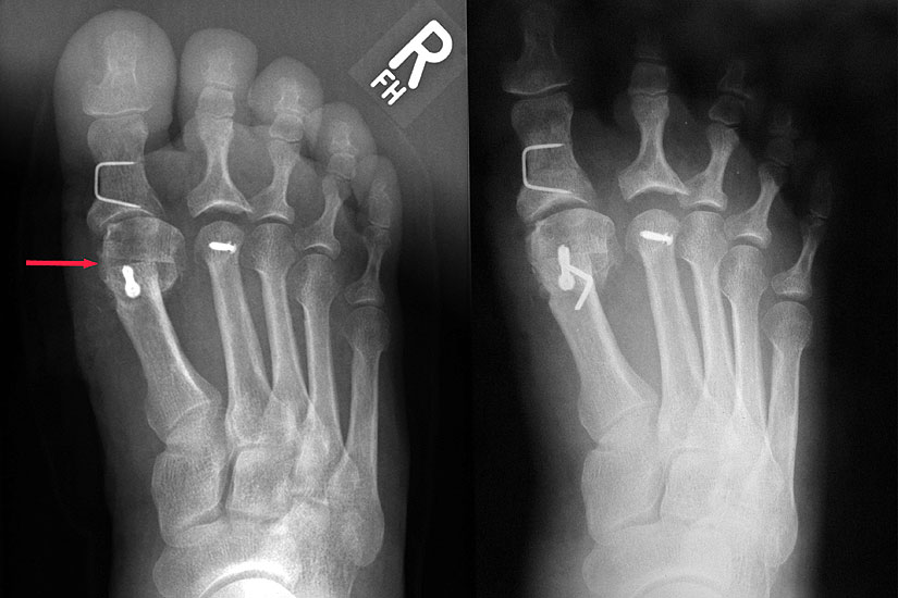 Avaskuläre Nekrose des Metatarsale 1 und ggf. resultierender Folgeeingriff (Arthrodese)