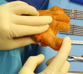 Patientenanleitung (ggf. Merkblatt) folgende präoperative Punkte zu beachten: Fußwaschung, Entfernung von Nagellack und/oder Schmuck, kein Eincremen der Füße vor der Operation