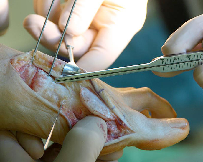 Nach Konsolidierung der Wundverhältnisse Lymphdrainage und zeitnahe krankengymnastische Übungsbehandlung des Großzehengrundgelenks.