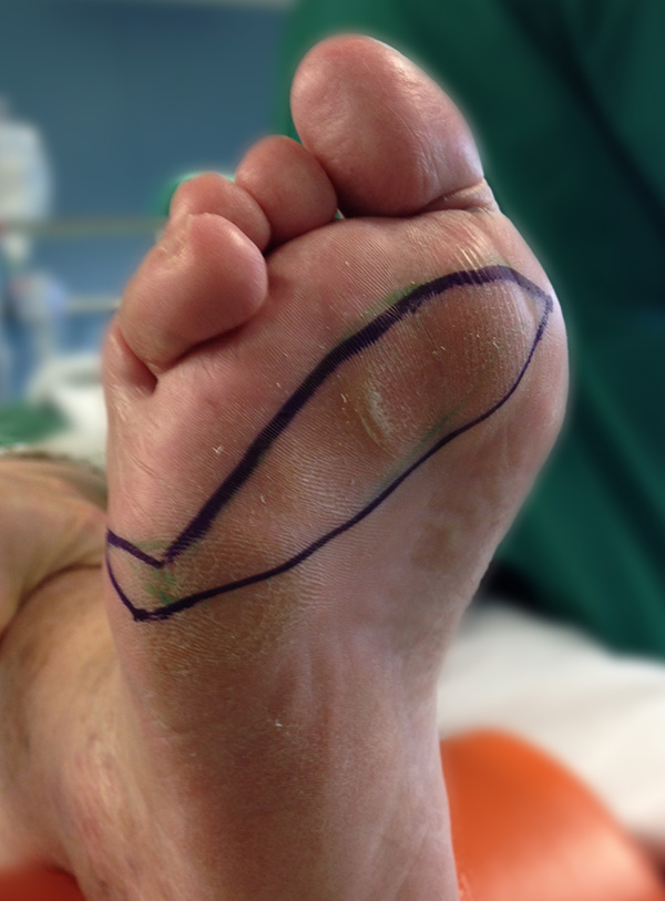 Operationstechnik: Plantarer Zugang (bevorzugt)