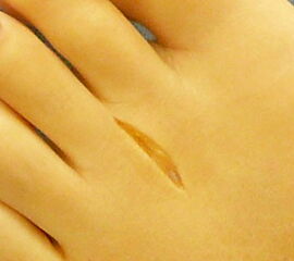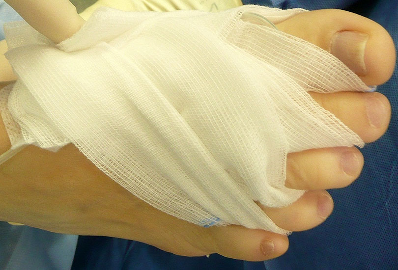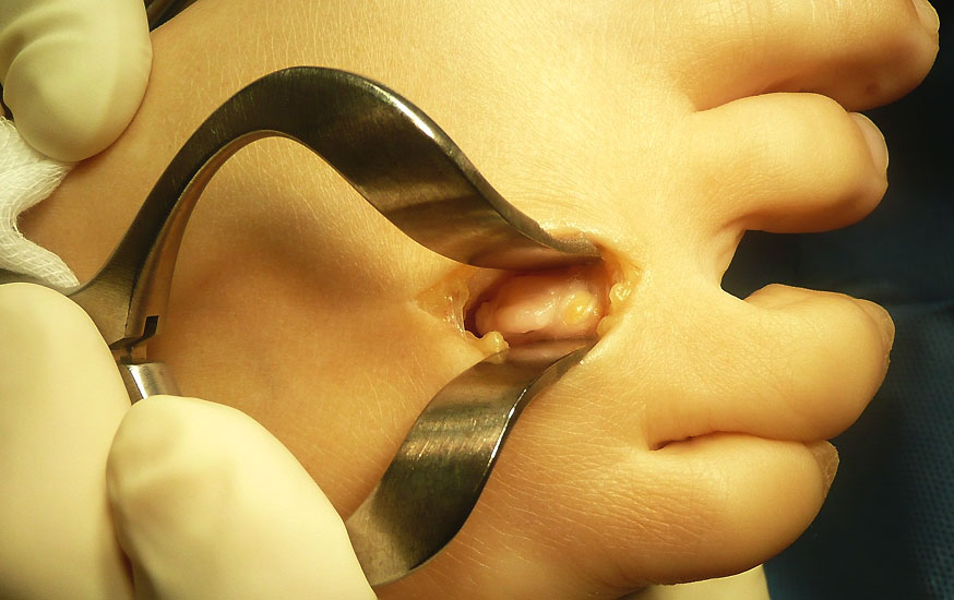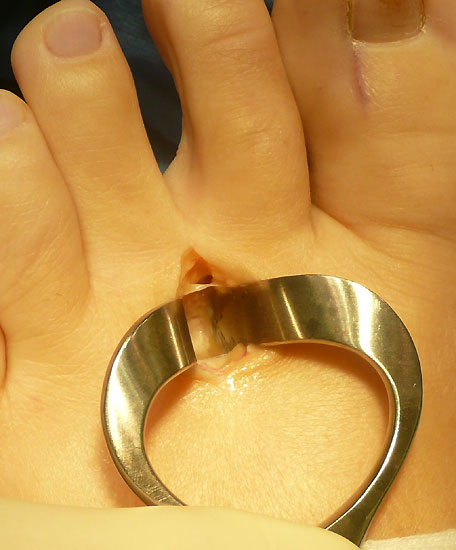 - Über einen Schnitt ist der Zugangsweg zu nebeneinanderliegenden Zehenzwischenräumen möglich