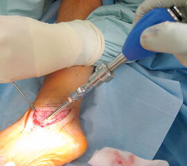 Störende Knochenkante am Calcaneus lateral (cave: Abschrägen)