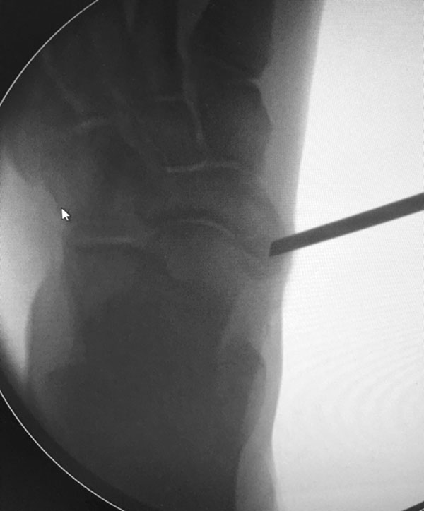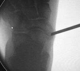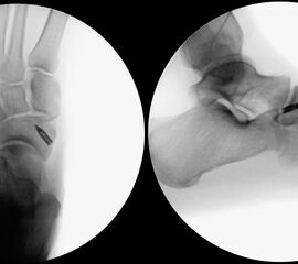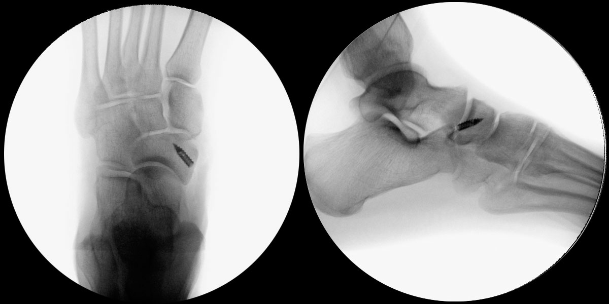 - Intra- und postoperativ Röntgenkontrolle Fuß in 2 Ebenen zur Dokumentation. Operational zusätzliche 3 Ebene in 45° Supination.