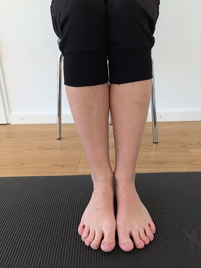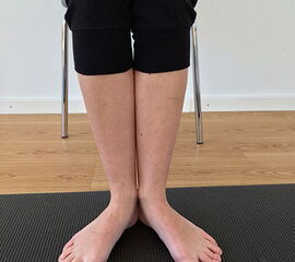 Schieben Sie beide Fußspitzen nach außen. Die Fersen und Knie bleiben dabei zusammen.