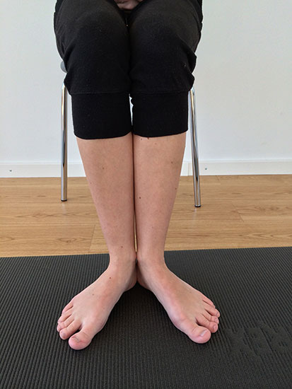 Sitzen Sie auf einem Hocker/Stuhl und stellen Sie beide Füße und Knie eng zusammen.
