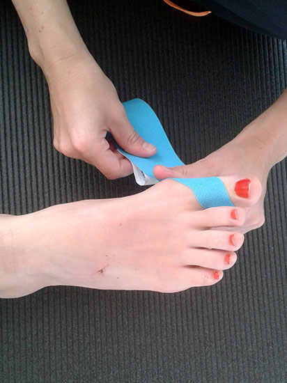 Sind oben genannte Kontraindikationen abgeklärt, kann das Tape angebracht werden.