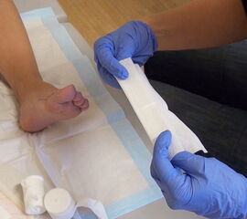 Wichtig: Verfärben sich Zehen nach der Anlage des Verbandes blau, treten unerwartet Schmerzen auf oder entsteht ein Engegefühl ist möglicherweise der Verband zu eng angelegt und muss sofort gelockert werden. Schmerzen am Fußaußenrand können auf einen zu engen Verband hinweisen. Auch kann eine Schwellung dazu führen, dass der Verband zu eng wird und gelockert werden muss.