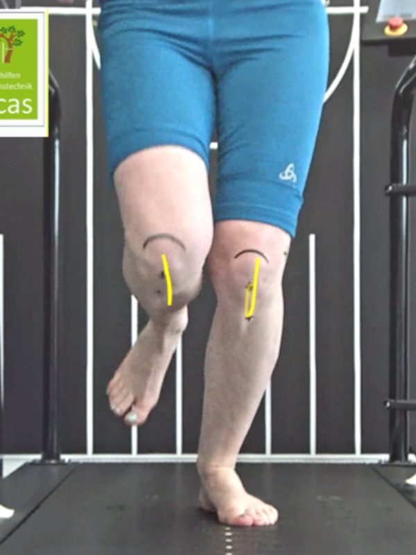 Die Kniebewegung an sich zeigt sich in der Ansicht von vorne weitestgehend stabil ohne besondere Abweichungen (Abb. 11a + 11b).