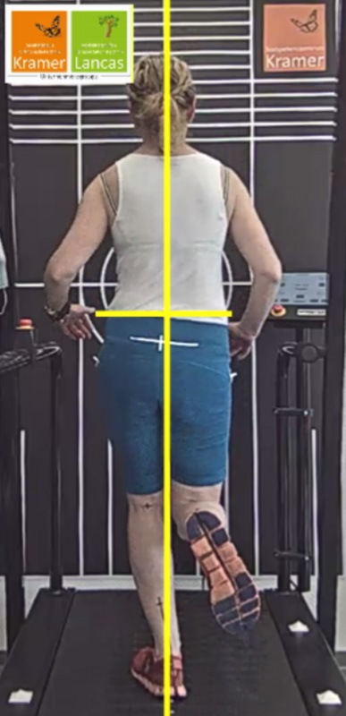 Begleitet bzw. verursacht wird dieses „Overcrossing“ durch die fehlende Stabilisierungsfähigkeit im Hüftbereich in der einbeinigen Stützphase: ein dynamisches Trendelenburg-Zeichen ist gut erkennbar (Abb. 7 + Abb. 8).
