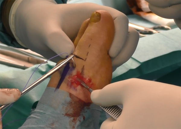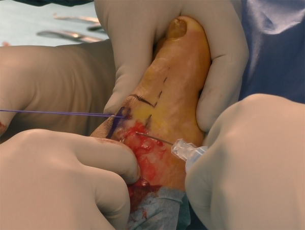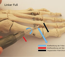 - Vollständiger Erhalt der Gelenkkapsel und somit auch keine Kompromittierung der Durchblutung des Metatarsaleköpfchens.