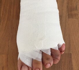 - Teilweise längere Schwellneigung, z.B. bei den subkapitalen Osteotomien der Metatarsalia 2- 5 (DMMO, Distale Minimalinvasive Metatarsale Osteotomie) und Kleinzehen-Korrektur.
