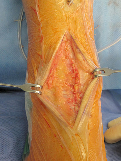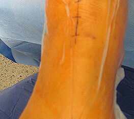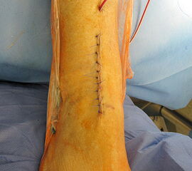 - Stenose/Verschluß der A. dorsalis pedis im Rahmen des schichtweisen Wundverschlußes mit Entwicklung einer Wundheilungsstörung.