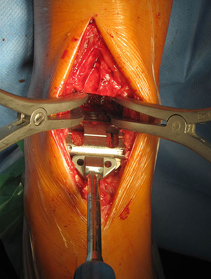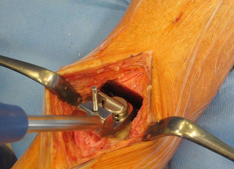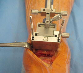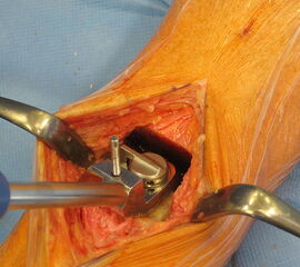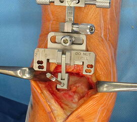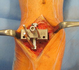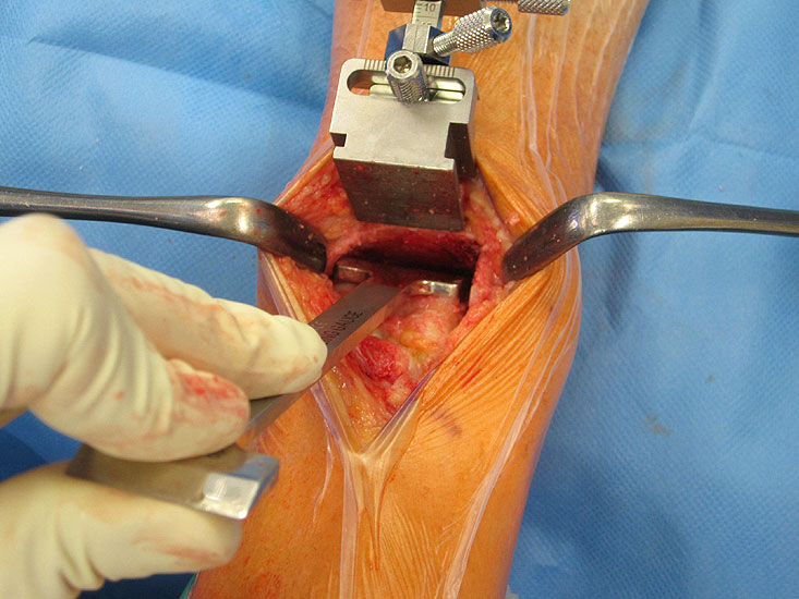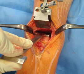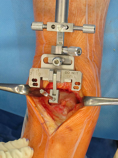 - Stichsäge (Schutz des Innenknöchels, mediale Ausrichtung der Tibiakomponente)