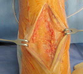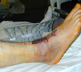 - Schlechte Weichteildeckung am distalen Unterschenkel, insbesondere ventrales Sprunggelenk.