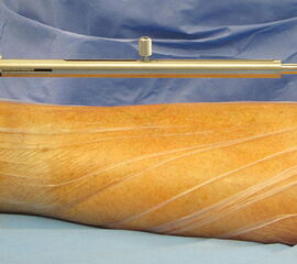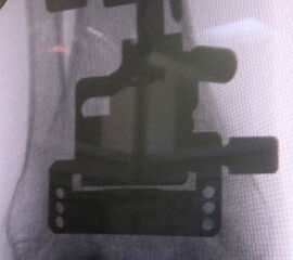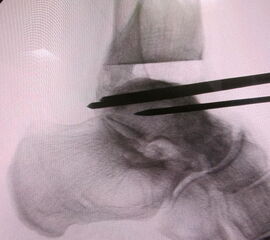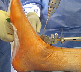 - 4,5 mm od. 7,0 mm durchbohrte Schrauben bei zusätzlichen knöchernen Rückfußkorrekturen oder Arthrodesen.