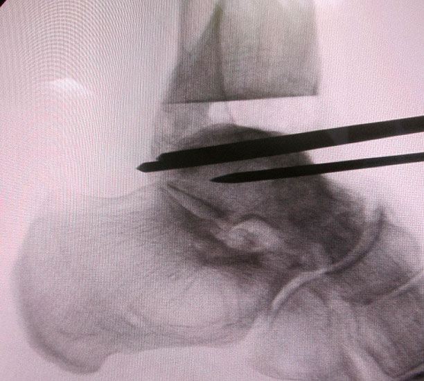 - Verletzung der Flex. hallucis longus oder Tibialis anterior Sehne.