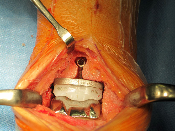 Voraussetzungen für eine langfristige stabile knöcherne Verankerung der Komponenten sind eine möglichst große Kontaktfläche zwischen Implantat und Knochen in der subchondralen Zone sowie die Vermeidung der Schwächung der kraftübertragenden Anteile der distalen Tibia. Dies betrifft insbesondere die ventrale Kortikalis der Tibia (Hintermann 2005).