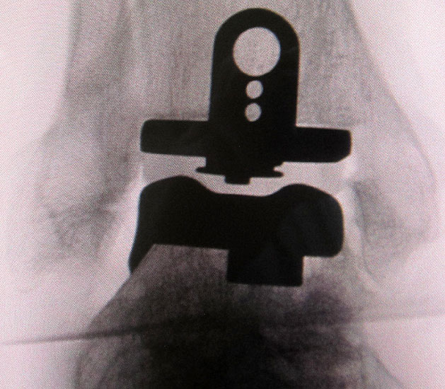 Ein anatomisches Komponentendesign mit der Möglichkeit von Seit- und Rotationsbewegungen des Talus in der Malleolengabel spiegelt am besten die normale Biomechanik eines Sprunggelenkes wider (Hintermann 2005).