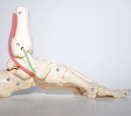 | Typ III | Ausriss distal am Os naviculare oder Spring Ligament | Schmerz an der Insertion des Bandes am Os naviculare. Abflachung des Längsgewölbes. | Refixation des Bandansatzes, bei insuffizientem Gewebe Augmentation mit einem Sehnenstreifen (Tibialis posterior Sehne). |